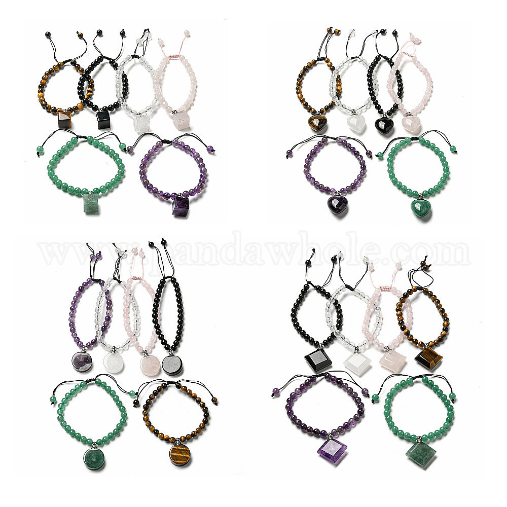 Браслет-подвеска из натуральных смешанных камней, плетеный регулируемый браслет
