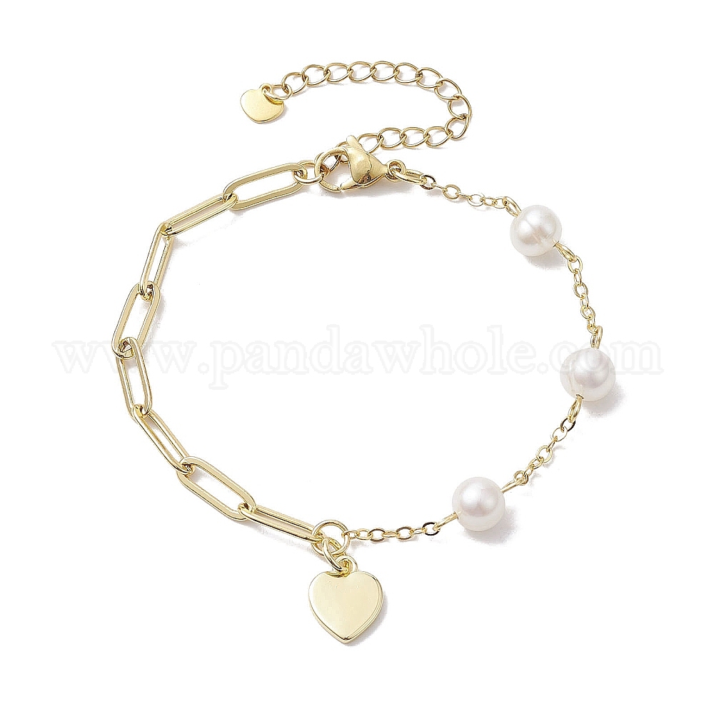Натуральный культивированный пресноводный жемчуг, бусины, цепочки-скрепки, браслеты в форме сердца с застежками-когтями омара для женщин