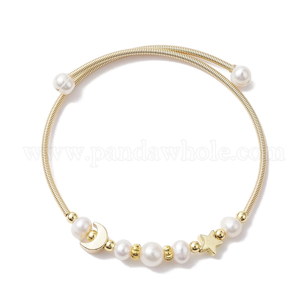 Браслет из натурального культивированного пресноводного жемчуга с латунными бусинами в форме звезды и луны