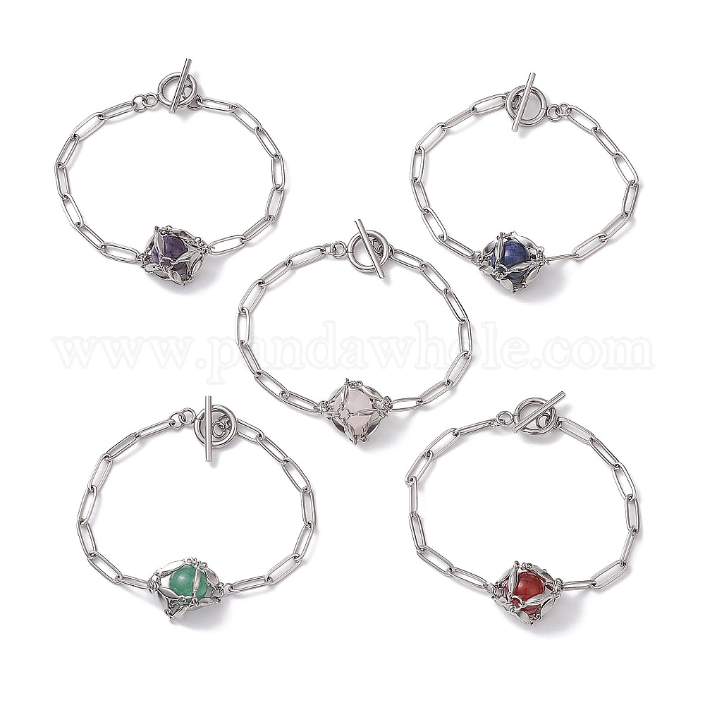 Круглые браслеты-мешочки в технике макраме со звеньями из смешанных драгоценных камней, 304 браслеты-цепочки со скрепками из нержавеющей стали для женщин и мужчин, нержавеющая сталь с цветным покрытием