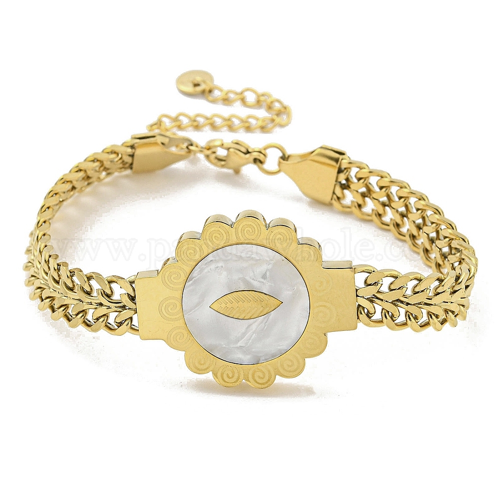 • Золотой 304 из нержавеющей стали витой цепи браслеты, Женские браслеты с цветочными звеньями из морской ракушки, золотые, 6-7/8 дюйм (17.5 см)