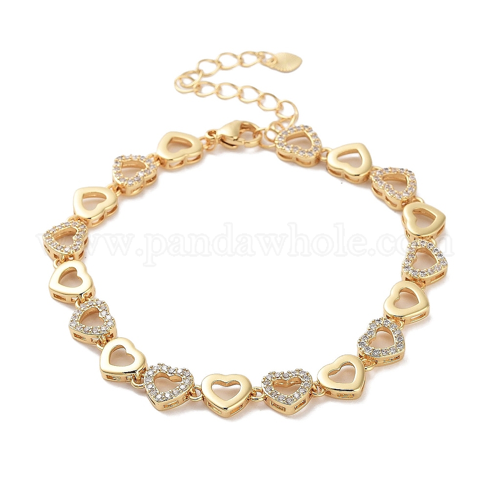 Браслеты-цепочки из латуни с покрытием стойки, прозрачный кубический цирконий, браслеты-цепочки в форме сердца для женщин, без кадмия и без свинца, долговечный