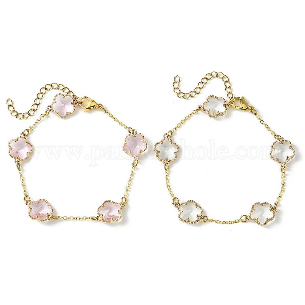 2 шт. 2 цвета стеклянные браслеты с цветочными звеньями, ювелирные изделия из латунной цепочки для женщин, золотые (02TJGS)