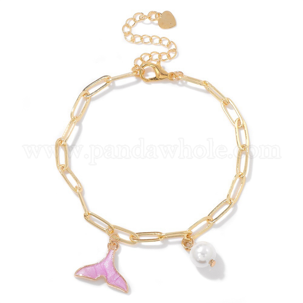 Браслеты с подвесками из сплава и пластика с имитацией жемчуга, с цепочками со скрепками для женщин