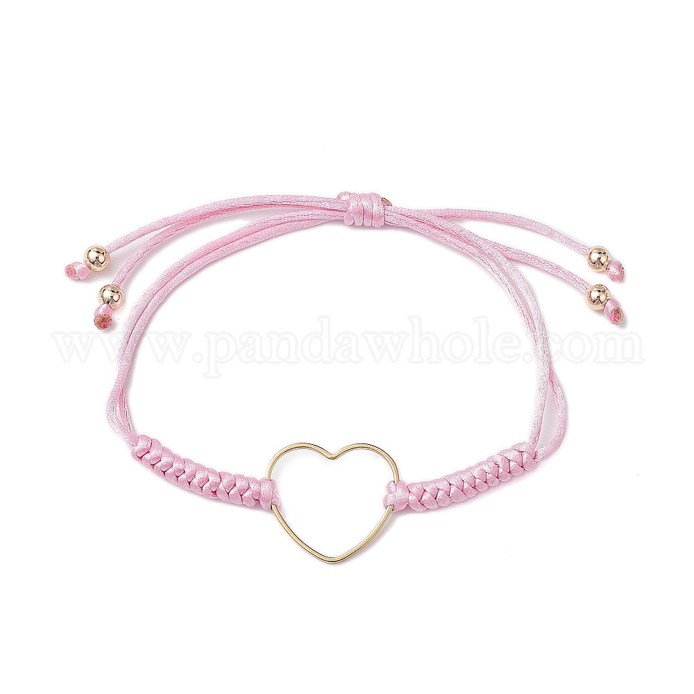 Золотой тон 201 из нержавеющей стали сердце ссылка браслеты, регулируемые женские браслеты из плетеного шнура из полиэстера
