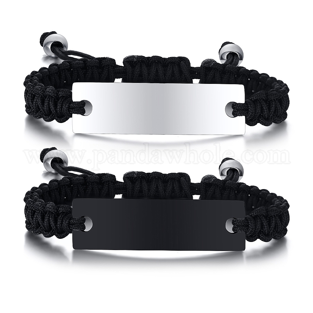Браслеты из нержавеющей стали с прямоугольными звеньями, регулируемые мужские браслеты из нейлонового шнура