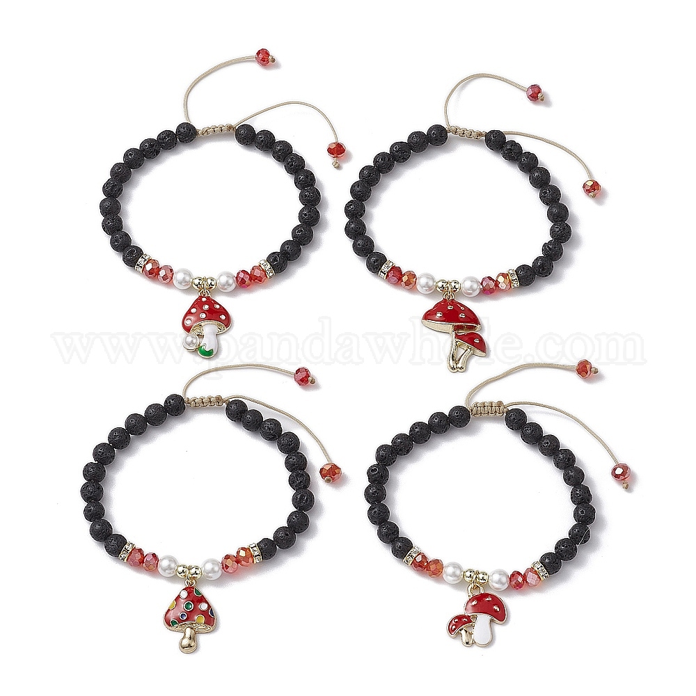 6круглые браслеты из натуральных лавовых камней и стеклянных бусин диаметром мм, Женские браслеты с подвесками из эмалированного грибного сплава