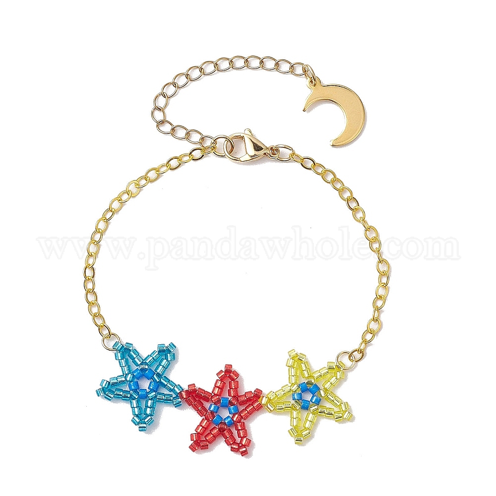 Браслеты из тройного стеклянного бисера со звездами, латунные плоские овальные браслеты-цепочки для женщин