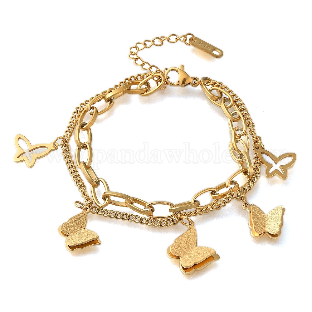 Ионное покрытие (ip) 304 многожильные браслеты из нержавеющей стали, браслеты с подвесками в виде бабочки из сплава для женщин
