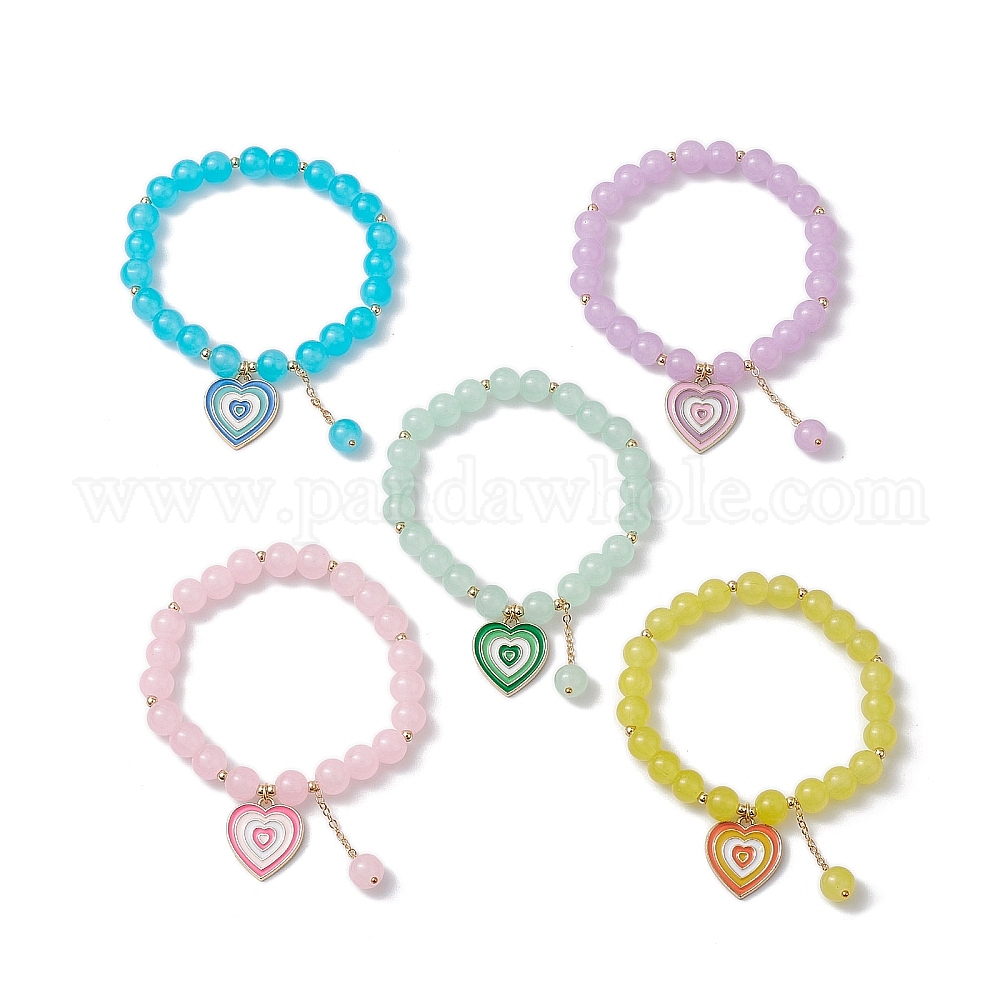 8круглые эластичные браслеты из стеклянных бусин диаметром мм, Женские браслеты с подвесками из эмалированного сплава в форме сердца