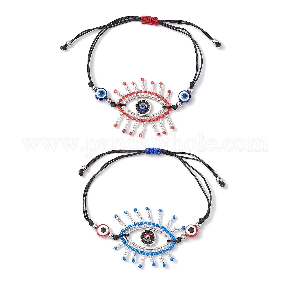 Наборы браслетов из звеньев из стеклянного бисера «конский глаз», регулируемые штабелируемые браслеты ручной работы с плетеными бусинами лэмпворк от сглаза (02W6ZP)