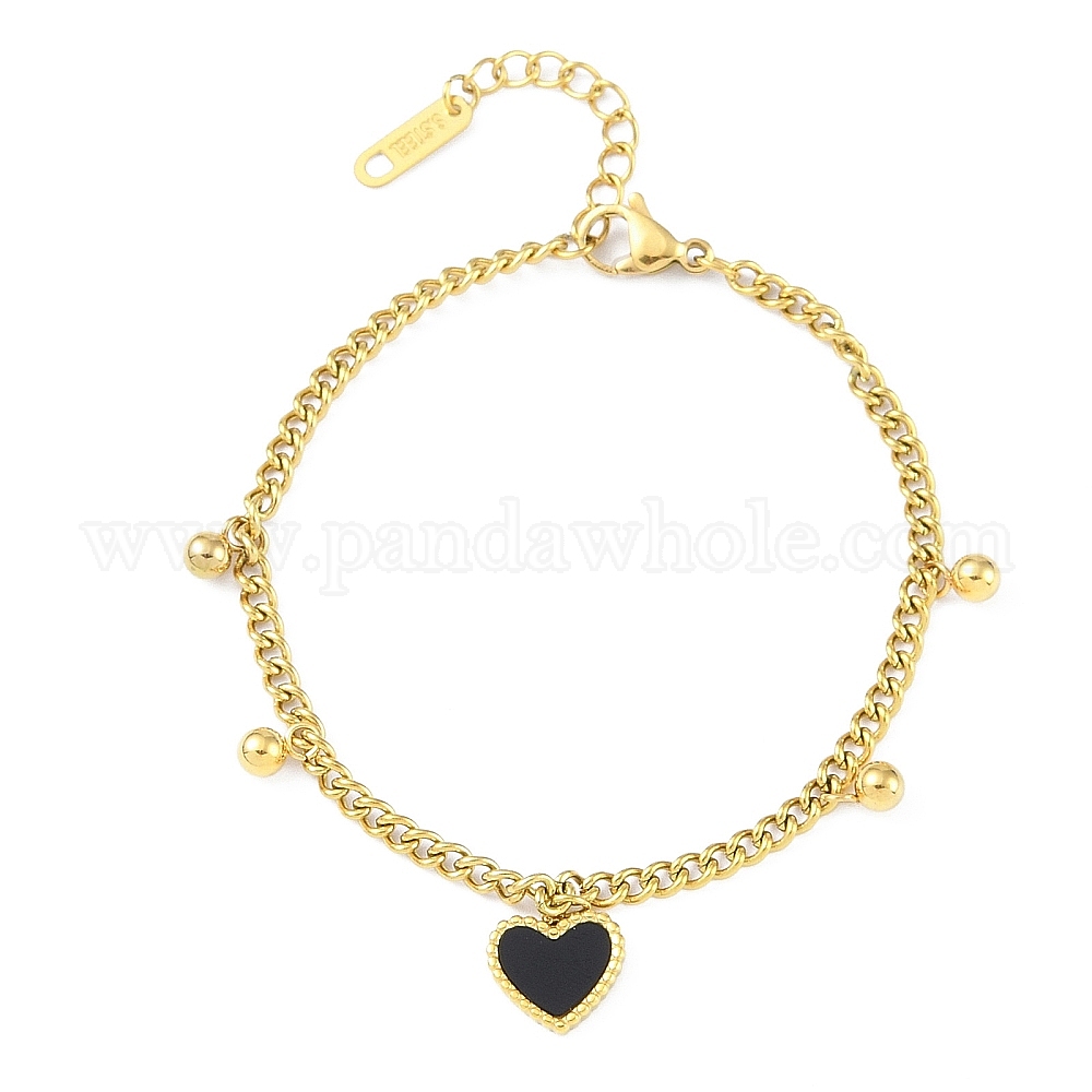 Ионное покрытие (ip) 304 браслеты из нержавеющей стали для женщин, с черными сердечками