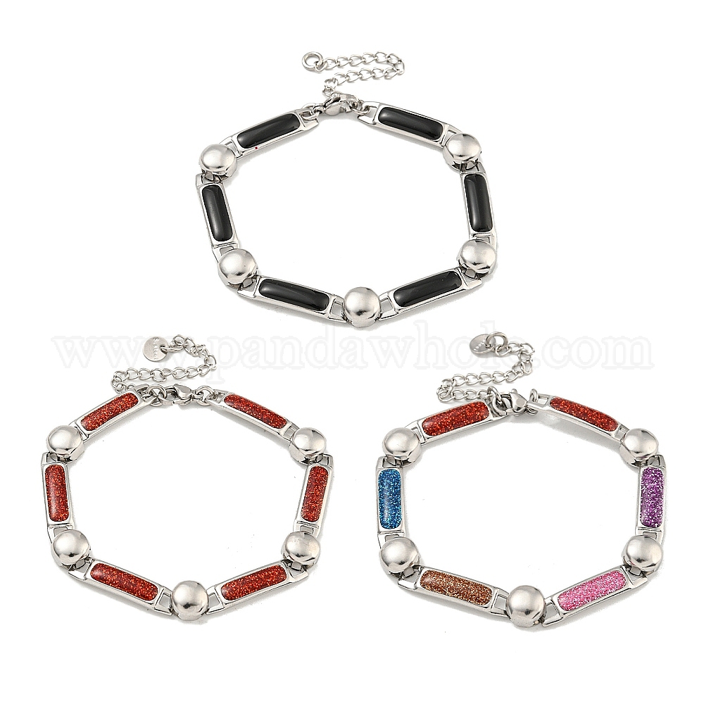304 браслеты-цепочки с прямоугольными звеньями из эмали из нержавеющей стали и блестящим порошком
