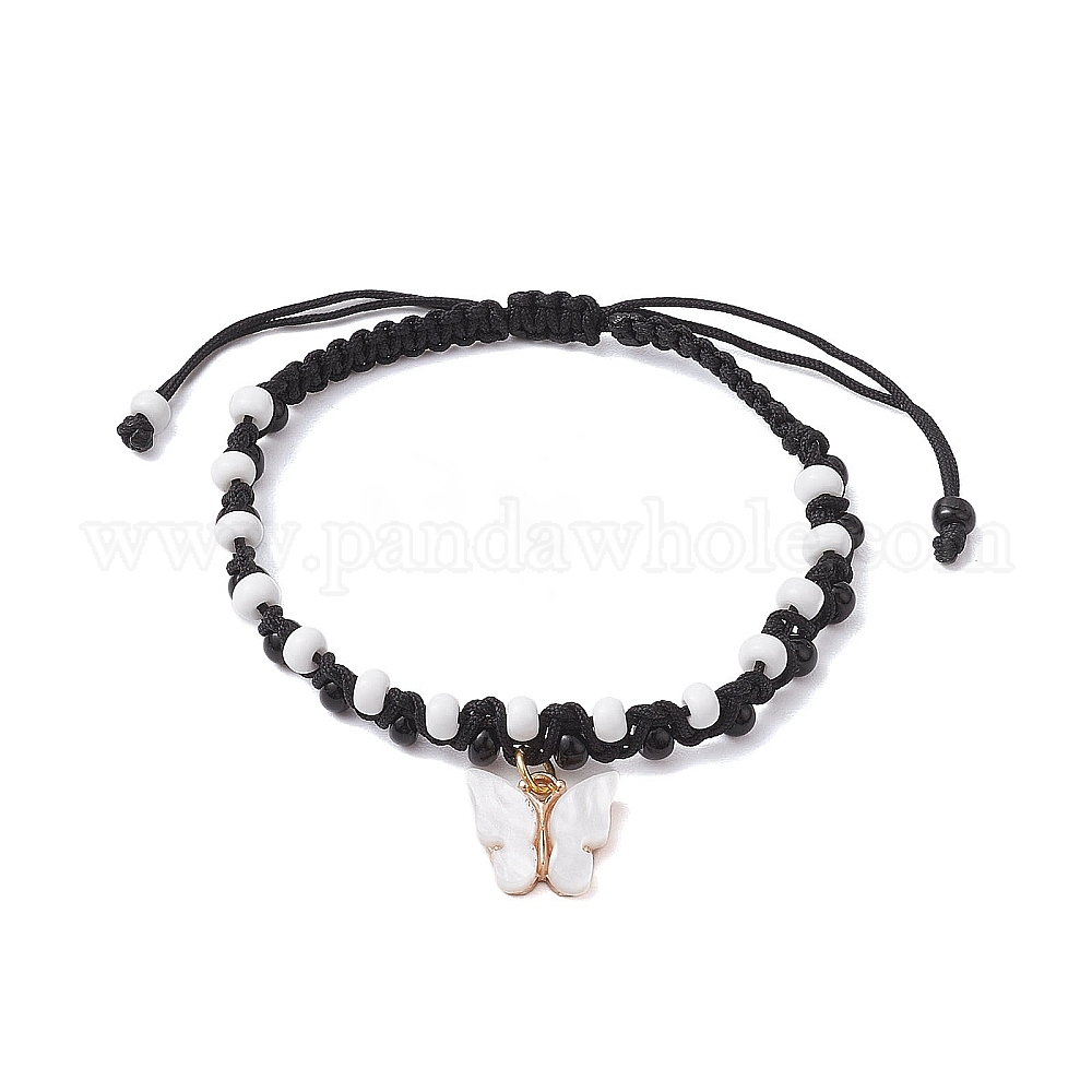 Регулируемые акриловые браслеты с подвесками в форме бабочки, круглые стеклянные бусины плетеные браслеты для женщин