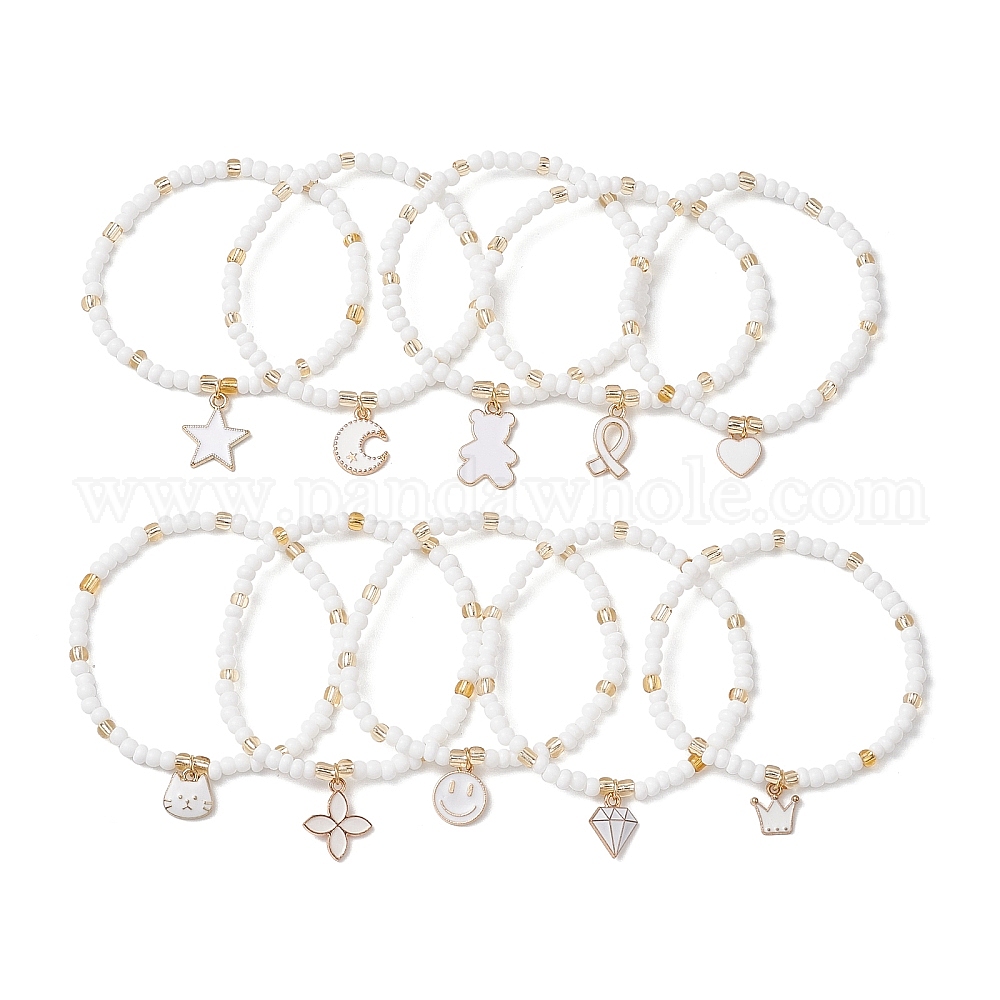 10шт 10 стили стеклянные бусины стрейч браслет наборы, штабелируемые браслеты с подвесками из сплава эмали