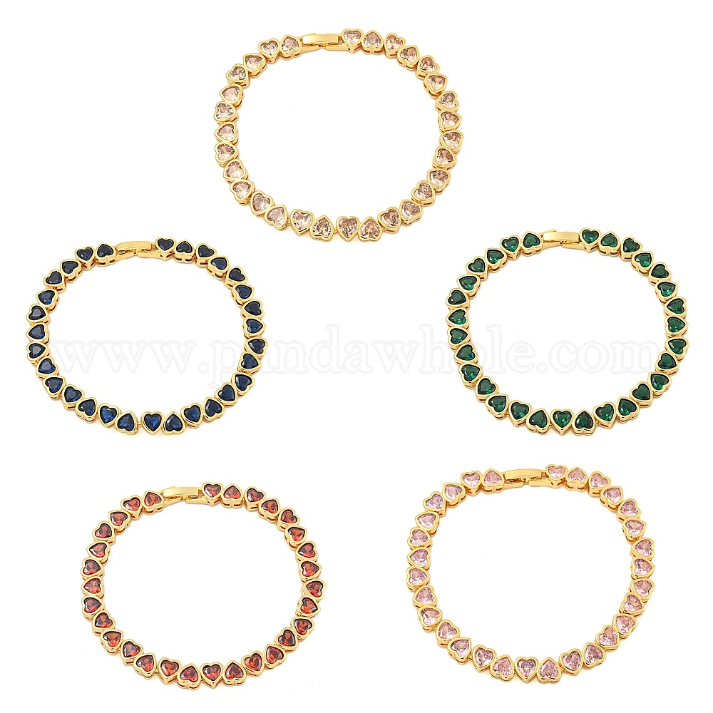 • Оранжево-Красный Браслеты из латуни с фианитом и звеньями в форме сердца, долговечный, без свинца и без кадмия, реальный 18 k позолоченный, оранжево-красный, 7-5/8 дюйм (19.5 см)