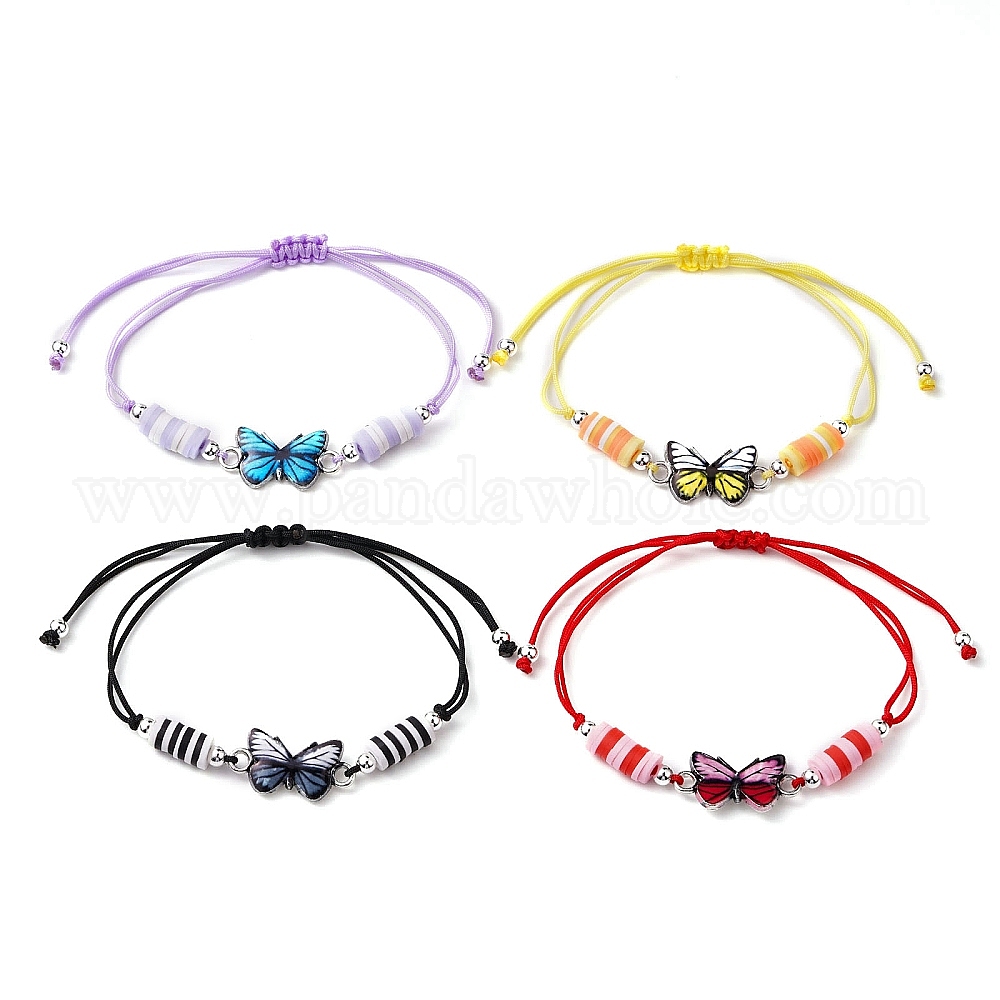 4шт 4 стили регулируемые наборы браслетов из сплава с бабочками, браслеты из плетеных бусин из полимерной глины ручной работы, которые можно складывать друг на друга