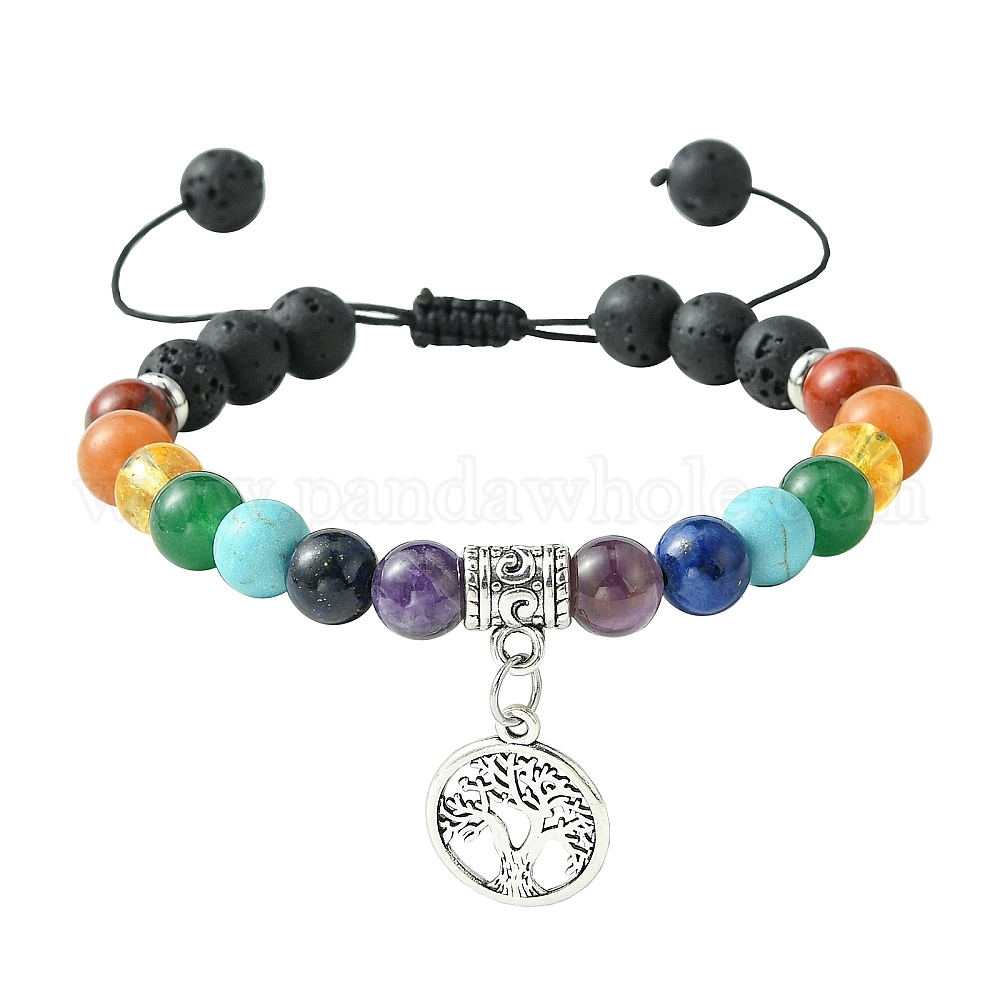 Чакра 8мм круглые драгоценные камни плетеные браслеты из бисера, регулируемые браслеты из сплава с подвесками в виде дерева жизни