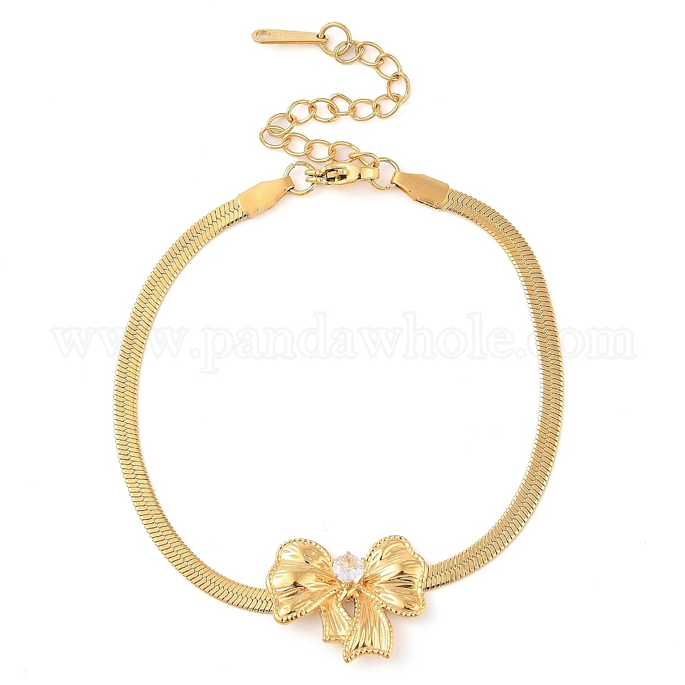 304 браслеты-змейки с подвесками в виде банта из нержавеющей стали и кристаллами горного хрусталя для женщин