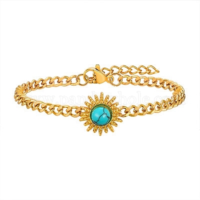 Браслеты из нержавеющей стали с панцирными цепями, с синтетическими бирюзовый, солнце