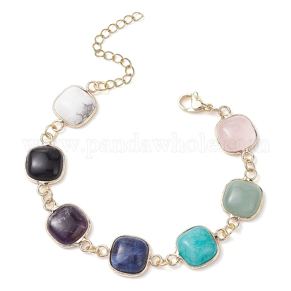 Браслеты из натуральных квадратных драгоценных камней, золотые 304 браслеты из нержавеющей стали с застежкой-лобстером для женщин