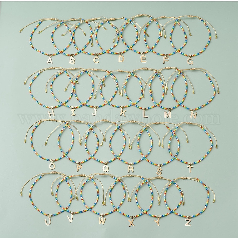 26шт. 26 стиль 201 браслеты с подвесками из нержавеющей стали с заглавными буквами a~z, регулируемые браслеты из стеклянных бусин