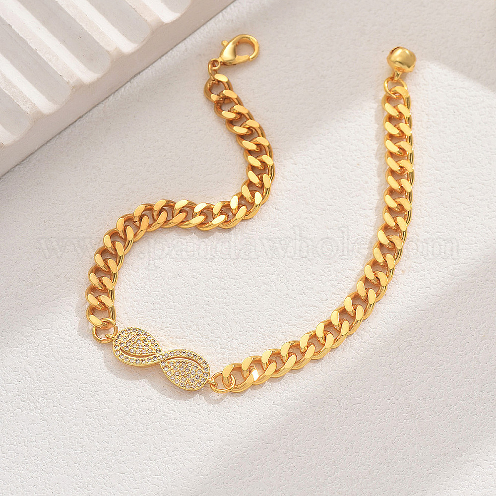 • Золотой Латунные микропаве прозрачные кубические цирконии бант кубинские звенья цепи женские повседневные браслеты, золотые, 8-1/4 дюйм (21 см)