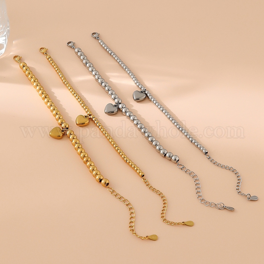 Браслеты с подвесками из нержавеющей стали для женщин, с круглых бусин, сердце