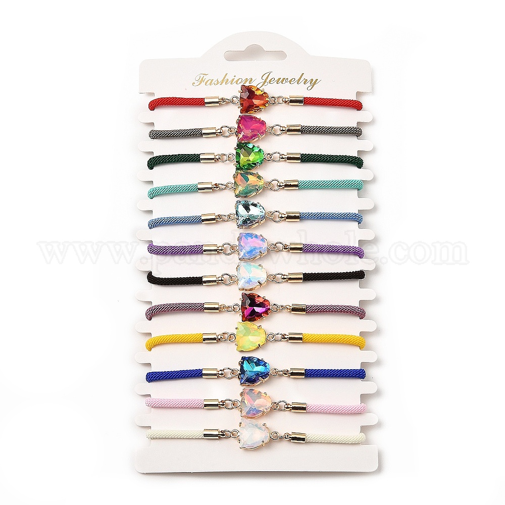 • (52) Непрозрачная лаванда 12шт 12 цвета полиэстер браслеты, латунные стеклянные звенья ювелирные изделия для женщин, леопард, разноцветные, 7-1/2 дюйм (19 см)