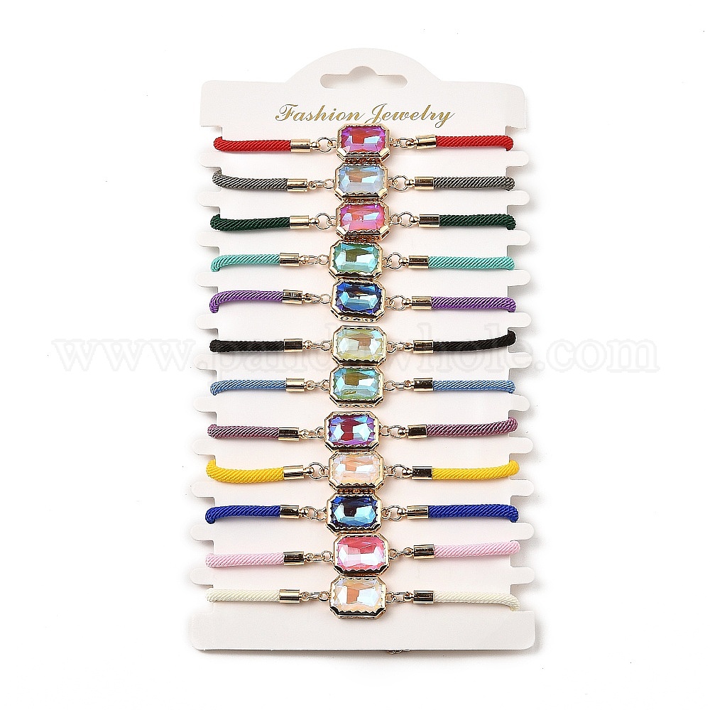 12шт 12 цвета полиэстер браслеты, латунные стеклянные звенья ювелирные изделия для женщин, прямоугольные