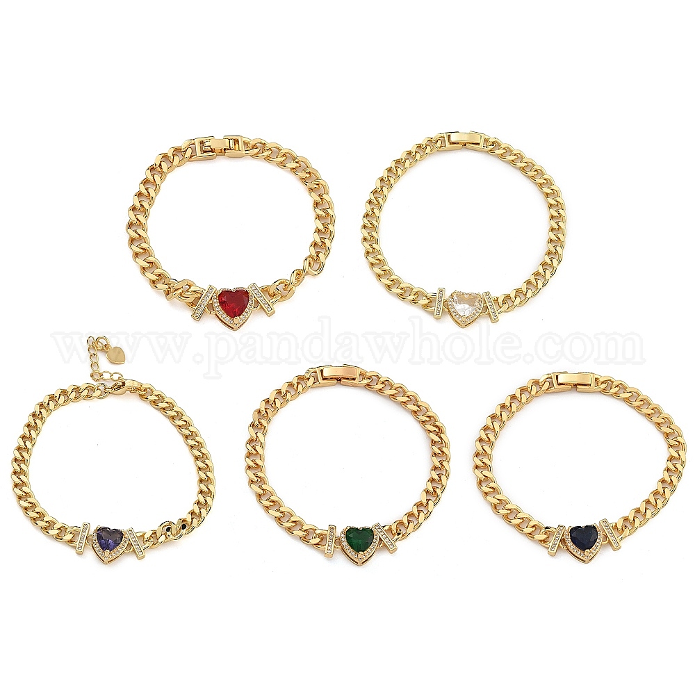 Латунь микро проложить кубические циркониевые браслеты, со стеклом, реальный 18 k позолоченный, сердце