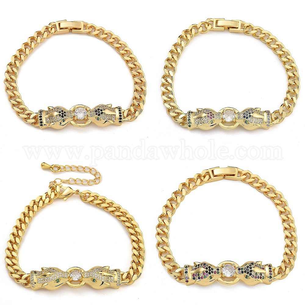 Латунь микро проложить кубические циркониевые браслеты, со стеклом, реальный 18 k позолоченный, леопард