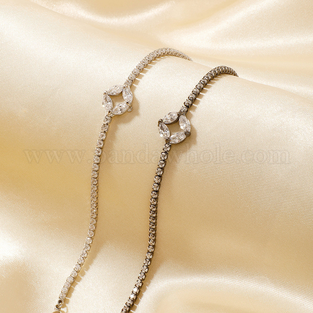 • Платина Браслеты из медной монеты и латунных звеньев со стразами, теннисный браслет, элегантные украшения в европейско-американском стиле для женщин, кристалл, платина, 6-3/4 дюйм (17 см)