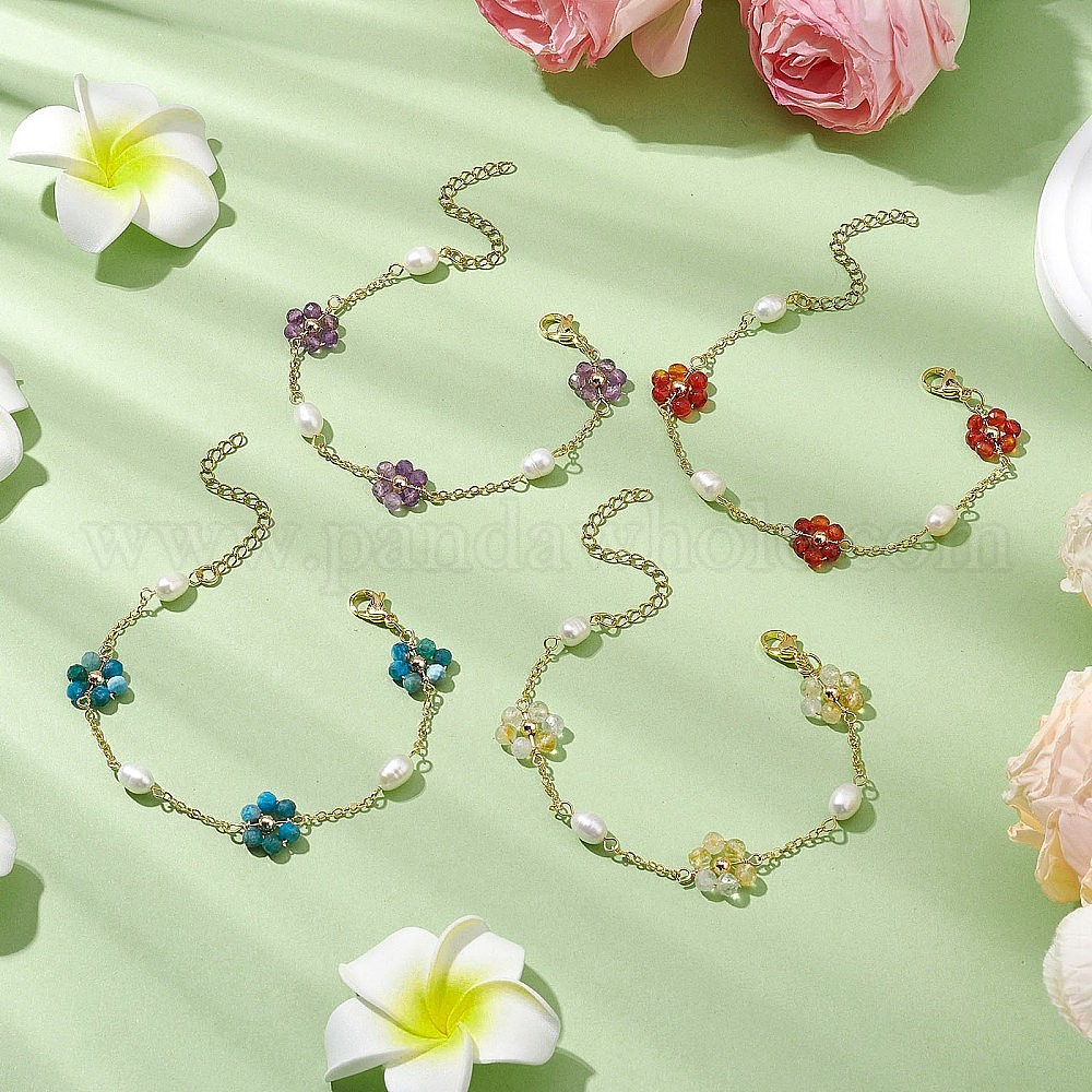 4шт. наборы браслетов из натуральных драгоценных камней и ракушек с бусинами и звеньями для женщин, цветок