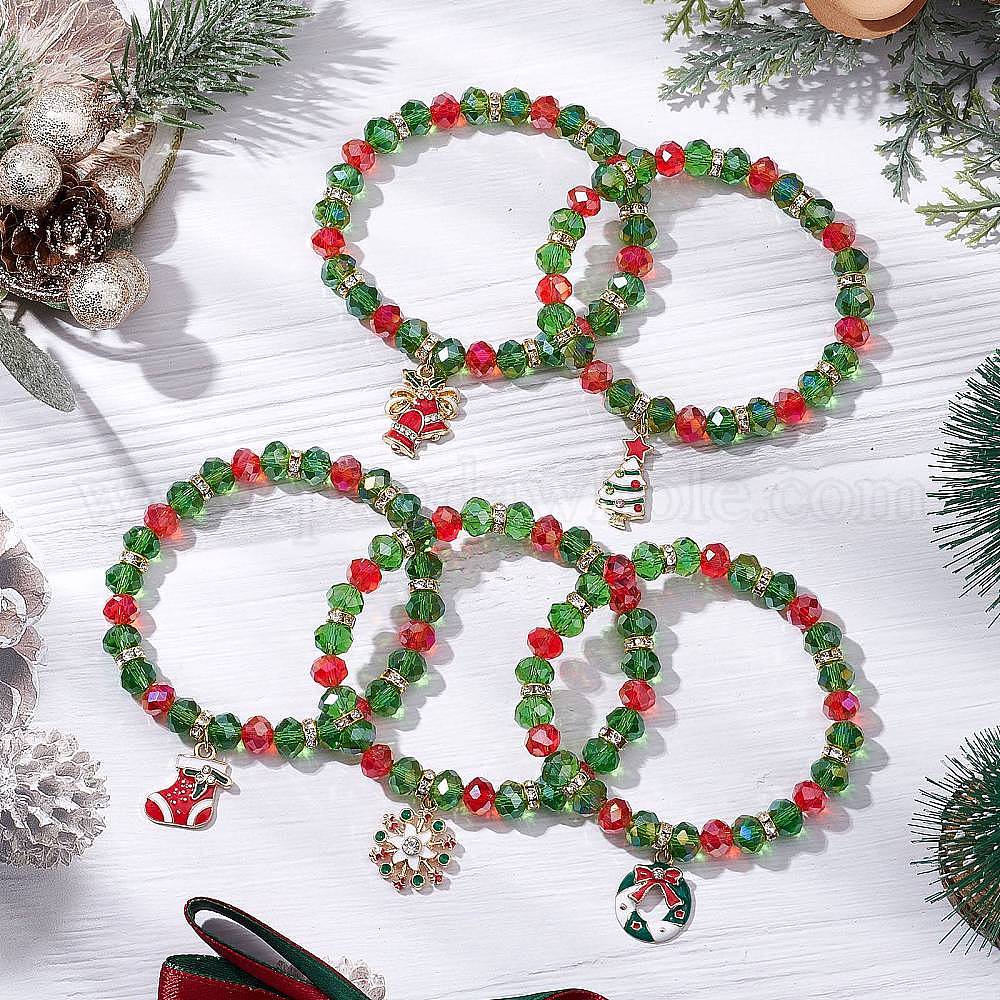 Рождественские тематические стеклянные бусины эластичные браслеты, с шармом из сплава эмали