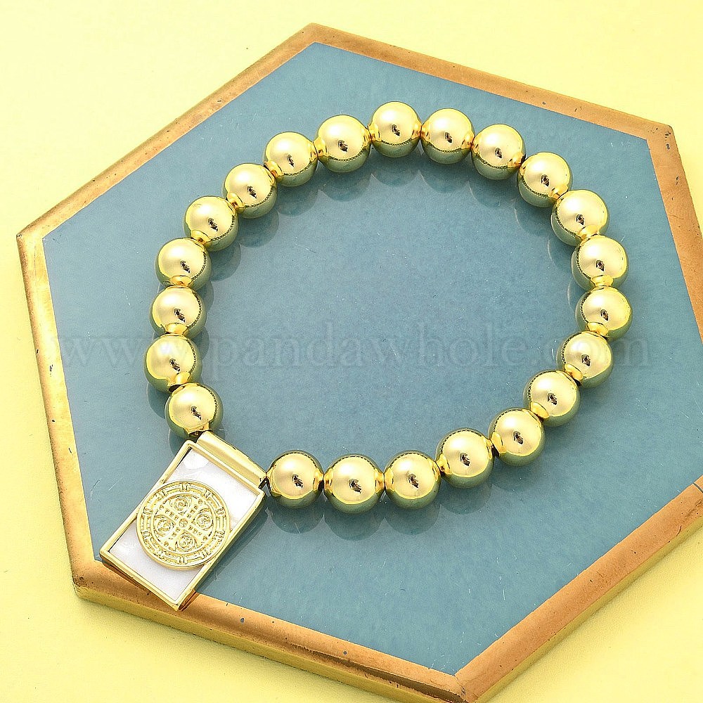 Латунные браслеты, с браслетами с подвесками из ракушек и эмали для женщин, прямоугольник с крестом