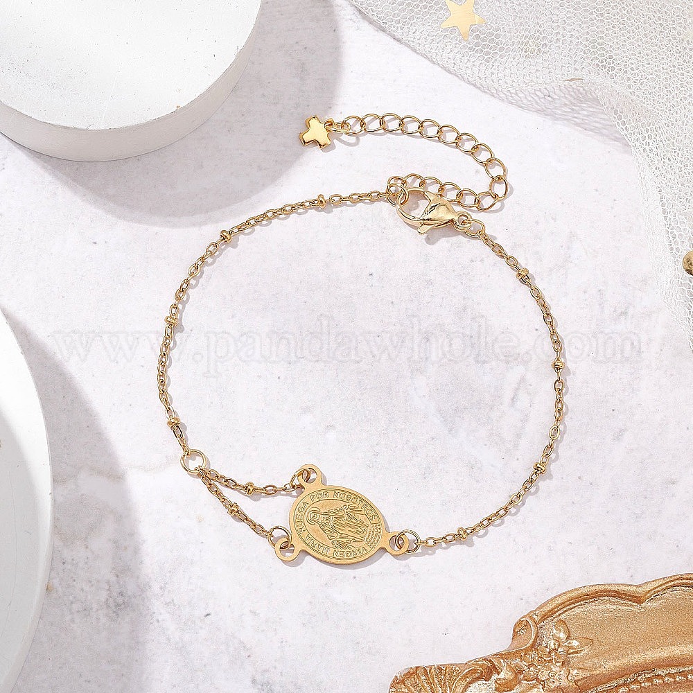 304 Браслеты с подвесками из нержавеющей стали и цепочками для женщин, овальные с рисунками " virgin mary"