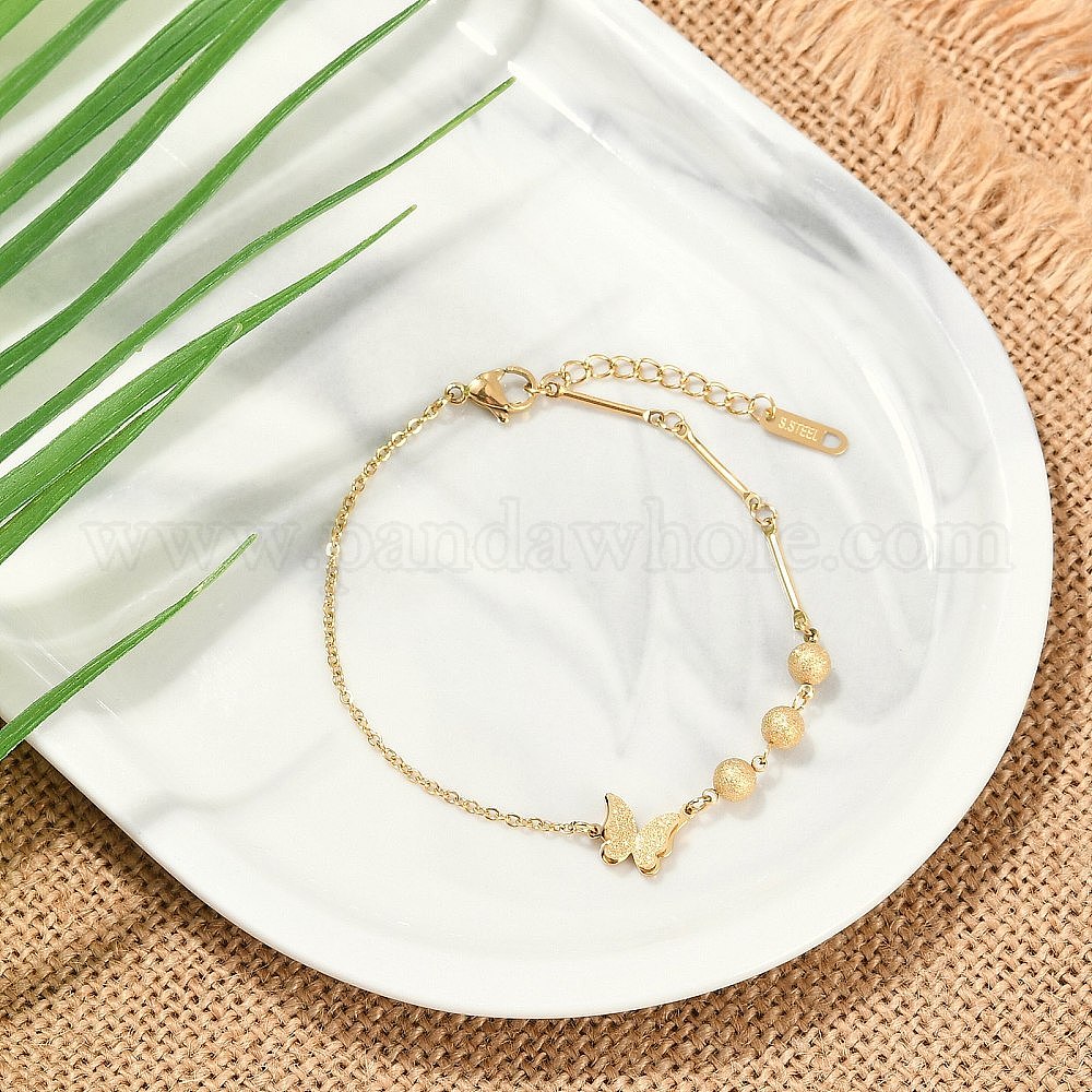 Ионное покрытие (ip) 304 браслеты с подвесками из нержавеющей стали, кабельные цепи и звенья цепи украшения для женщин, с матовой бусиной, бабочка