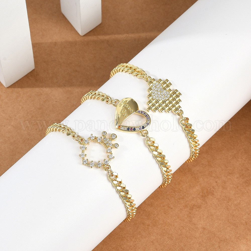 Латунь микро проложить кубического циркония браслеты ссылку, кубинская цепочка ювелирные изделия для женщин, сердце