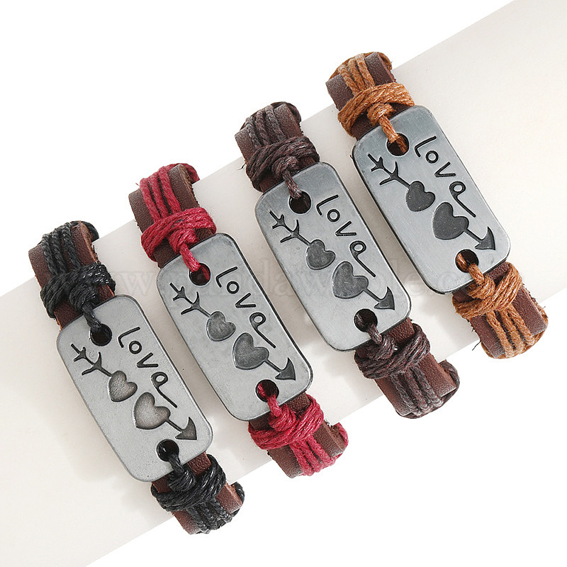 Ретро-браслеты из сплава коровьей кожи со звеньями для пары, подарок на День Святого Валентина , прямоугольник со словом «любовь» и стрелкой в виде сердца