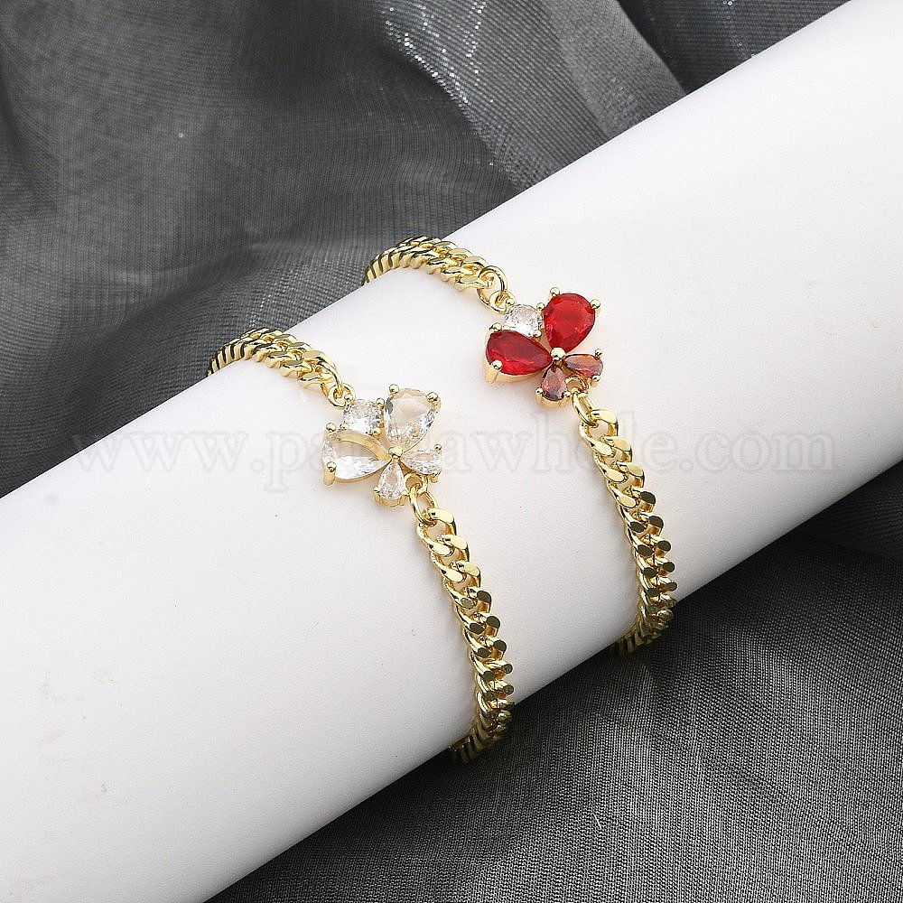 Латунь микро проложить кубического циркония браслеты ссылку, цепи панциря ювелирные изделия для женщин, реальный 18 k позолоченный, бабочка