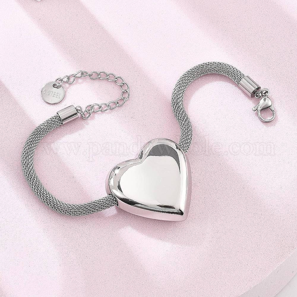 304 браслеты из нержавеющей стали в форме сердца, сетка цепочка украшения для женщин
