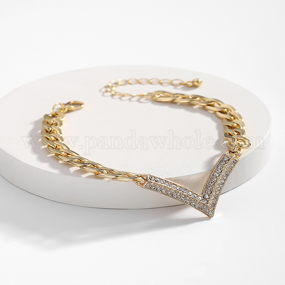 Браслеты из сплава со стразами в форме буквы V, браслеты из кубинской цепочки для женщин (0317P2)