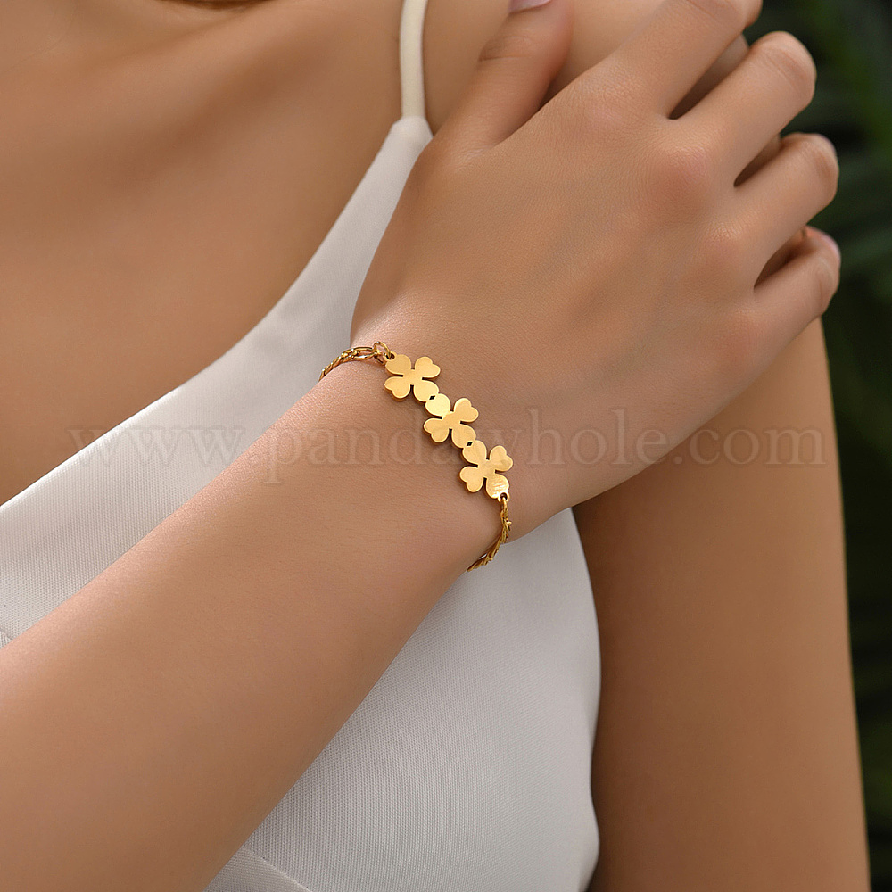 201 браслеты-цепочки Фигаро из нержавеющей стали, браслеты с клеверными звеньями для женщин