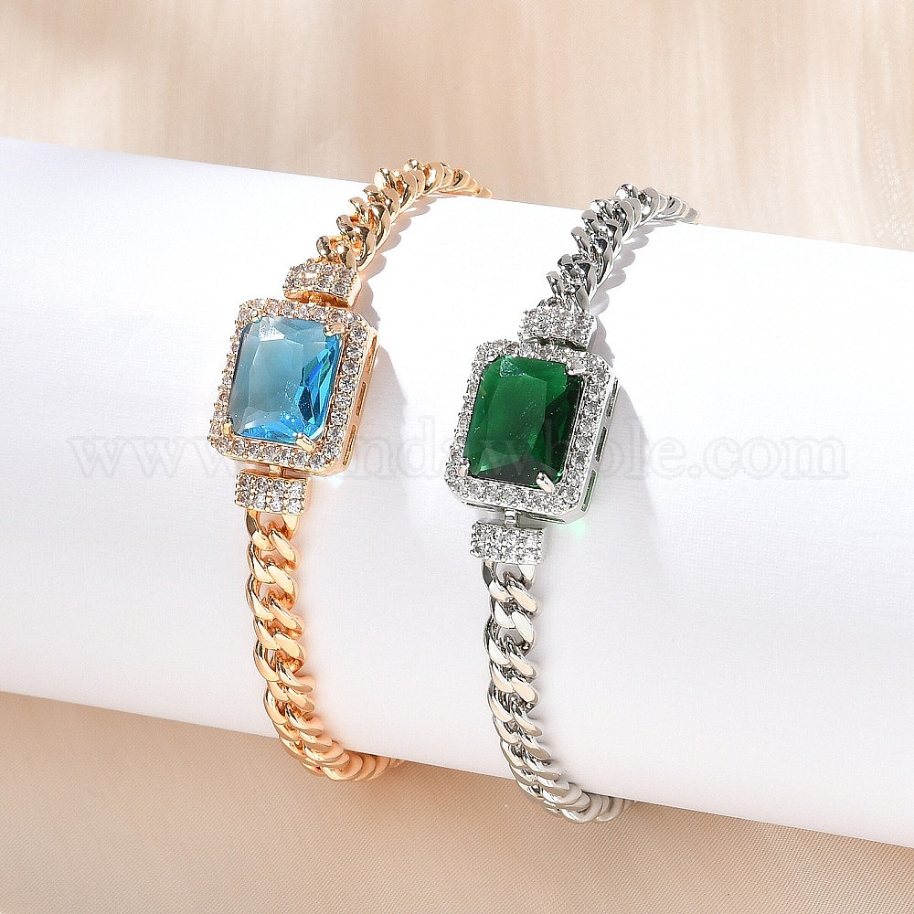 Прямоугольные звенья браслетов из латуни с микропаве из кубического циркония, бордюрные цепи, без кадмия и без свинца, долговечный