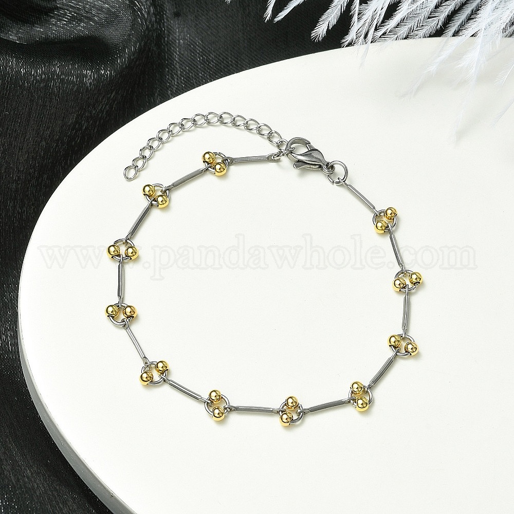 201 браслеты из нержавеющей стали ссылка для женщин, с латунными шариками и 304 застежками из лобстера из нержавеющей стали