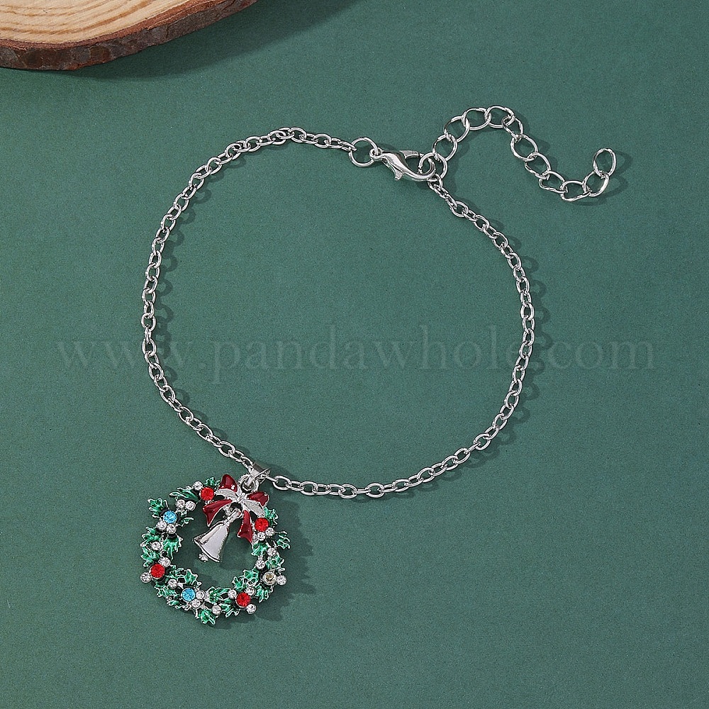 Браслеты из сплава с подвесками в виде рождественского венка и рождественского колокольчика, браслеты-цепочки для женщин, со стразами