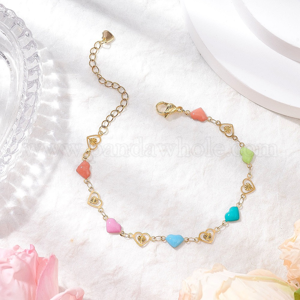 • Золотой 304 браслеты из нержавеющей стали с сердечками и эмалью, золотые, 7-1/4 дюйм (18.3 см)