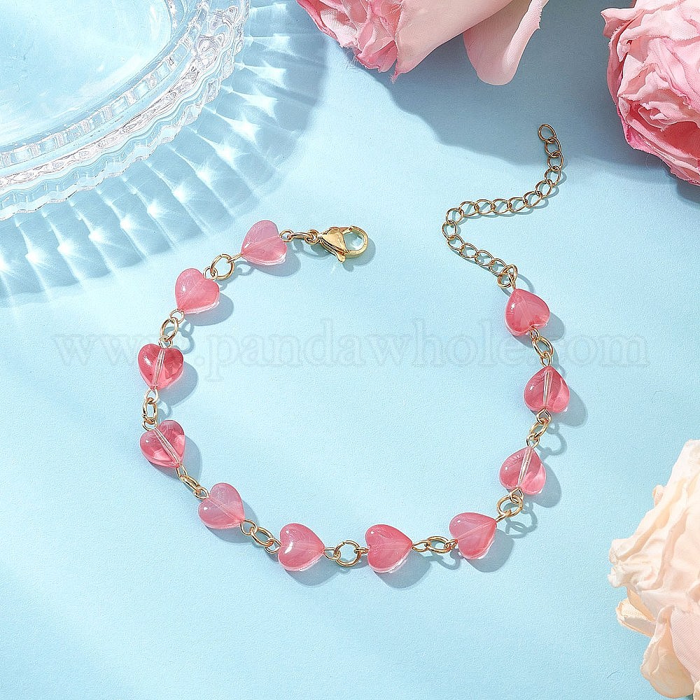 Браслеты из стеклянных бусин в форме сердца для женщин, с 304 из нержавеющей стали Lobster Claw застежками