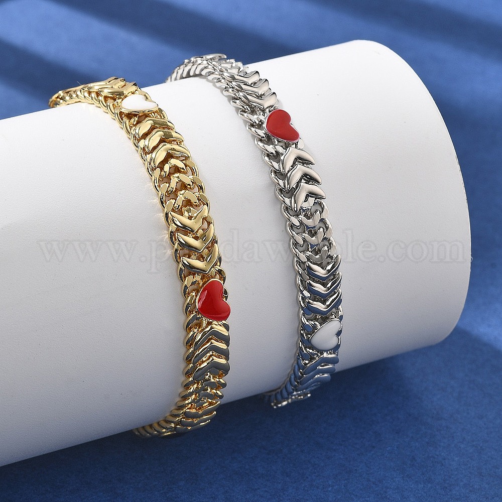 Браслеты из латунных эмалевых сердечек для женщин, без кадмия и без свинца, стойки покрытие
